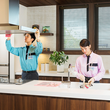 加熱調理器やシンク、吊り戸棚の表面、床、壁など、お手入れが必要な場所をご要望に応じてクリーニング。