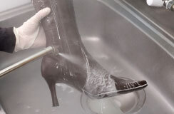 水に弱いイメージの革靴も、オゾンが含まれたオゾン水で、靴の内側から外側まで1足1足丁寧に丸洗いします。