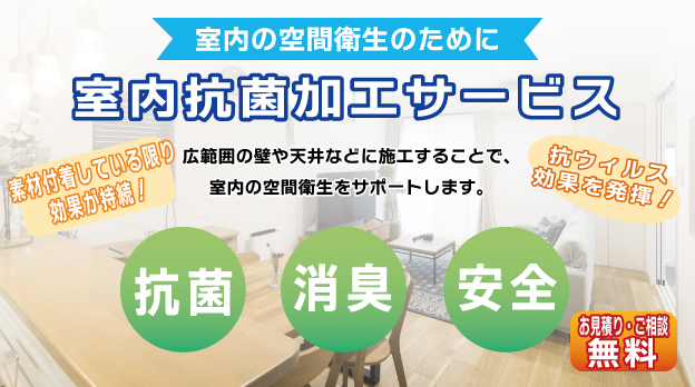 - ※室内抗菌加工サービス(硬質面)は20㎡を超える場合は、20㎡ごとに33,000円(税込)追加