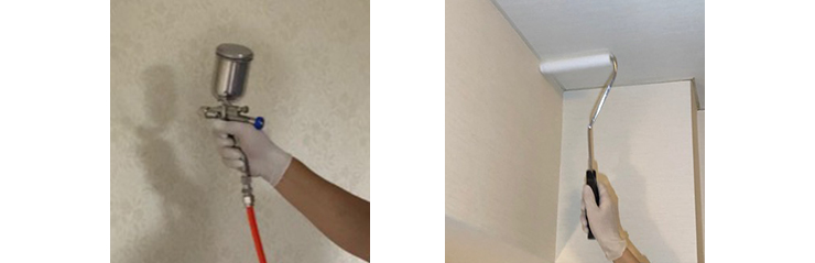 テーブル・手すり・取手などの硬質面には、抗菌・抗ウイルス効果のある薬剤を塗布するサービス。また、壁や天井には光触媒施工液を塗布、噴霧するサービス。2つのサービスを組み合わせることも可能です。