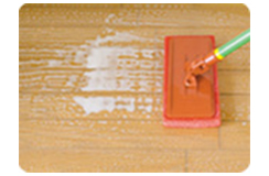 汚れを除去した後は、専用の資器材でワックス塗布。化学タイルやクッションフロアなど、どんな床材も美しくつややかに仕上げます。