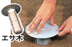 建物周辺にステションという器具を埋め込みます。筒状の形で、中にエサ木を入れておきます。